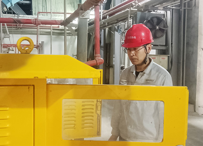早上站班会刚开完,刘树强就接到主控运行电话,#1炉2,3,4,5号冷渣机出现堵塞下渣不畅现象。作为锅炉班组的班长,他立刻开展清堵行动。由于冷渣机的下渣口较小,且下渣温度高达850℃,冷渣机通渣时,不仅需要使用细长的钢筋进行疏通,而且通渣的人员还需要穿上厚重的防烫服进行作业,以防被烫伤。大家争分夺秒,你下场我上阵,经过3个多小时的“车轮战”,终于将1号炉4台冷渣机下渣管成功疏通,恢复了装置的正常运行,险情彻底排除。岗位就是战场。在特殊时期,面对无备用炉、人员紧张等诸多困难,他能听召唤、扛责任,快速反应,及时疏通和解决1号炉冷渣机堵塞问题,彰显忠诚与担当,确保设备安全平稳运行。