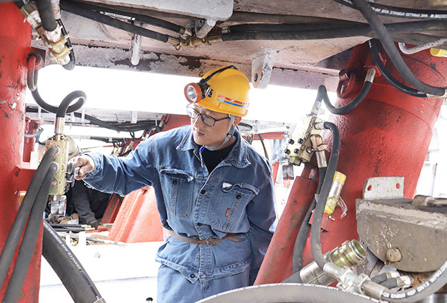 浑身是泥的他最后一个从车上跳下来,跟往常一样,他的身上又是最脏的,在XV2314工作面安装工溜,他带领几个人负责现场作业,安好工溜机尾后开始穿链,但是用来穿链的铁丝怎么也穿不过机尾,他毫不犹豫地指挥大家拆开挡煤板,自己则爬进溜子里解决问题。他却由于进去的太深被卡住了,大家又合力把他拽了出来,出来后的他从头到腰全是煤泥,衣服也湿透了,原来机尾的煤在水的浸泡下全成了煤泥,但他丝毫没有在意,他总是冲在最前头,为完成任务默默付出。