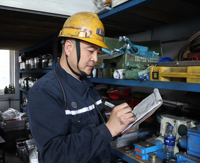 为确保工程稳步推进,任艳军既是指挥员、又是战斗员,坚决为矿井把好安全关。井下环境差、危险系数高、劳动强度大,每天入井后多看一眼、多问一嘴、多学一点,早已是任艳军工作多年来的日常习惯。他深知,综采工作面的稳产高产离不开采煤机、掘进机、输送机的稳定性。因此,每次上岗前,他都会认真确认作业场所是否安全,作业地点是否满足作业要求,仔细检查设备状态是否良好。“首先是作业前检查,检查工作面两帮及顶板支护情况;检查工作面材料、工器具回收情况;检查转载胶带输送机,确保……”,检修班作为生产班的“私人医生”,任艳军对班组成员岗位标准化作业规范有着极高的要求,每次入井前都要开展“班前10分钟”小课堂学习,并进行考核,有效提升了班组成员的操作水平。
