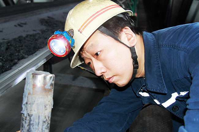 王凯所在班组负责4部皮带运输机、2000多米皮带,面对点多面广战线长、设备老化严重、巡回检查任务重、潜在隐患多、人员少等不利因素,他没有丝毫的退缩和妥协,接班后第一项任务就是全面检查作业场所安全状况,以“望闻问切”的方式查看每台设备运行情况,紧密协调各个环节,确保每台设备安全高效运行。去年5月份,4301工作面过地质构造带,顶板破碎、煤泥黏稠度高、大块矸石较多,振动筛被煤泥糊住,并且大块矸石将漏煤口堵住,由于振动筛工作条件空间狭小,必须爬进振动筛底部砸碎矸石,他安排1名工友在筛面清理煤泥及杂物,自己趴在振动筛底部,经过2个多小时努力,用撬杠将矸石砸碎,及时把振动筛清理干净,确保了生产顺利进行。